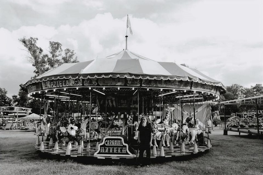 Al inicio, este carrusel era empujado con la misma fuerza de los niños mientras corrían, cosa que resultaba más divertida para quienes empujaban, que para quienes montaban un caballito. En los años subsecuentes, mi abuelo y su hermano fueron modificando la manera de hacerlo girar, gracias al ingenio compartido con otros señores y adaptarle el mecanismo de un tractor y de un molino utilizando tractolina o petróleo, para años después, habilitarlo con un motor eléctrico. Y aunque el método para generar el movimiento cambió, el gozo generado en niños y niñas jamás lo hizo, al contrario, se fue haciendo extensivo a muchos lugares del estado y creció también con la fabricación de otros juegos como la rueda de la fortuna, los platillos y las sillas voladoras. En la fabricación de estos juegos colaboró también el hermano de mi abuelita, Joel Roberth Gómez.