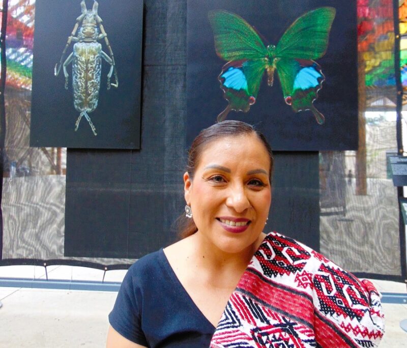 No sé si fue casual o previsto por su equipo, pero nos fuimos a conversar en medio de una exposición fotográfica de insectos donde lucía la imagen enorme de una mariposa. Ella, Karina Barón, es originaria de Tuxtepec, en la Cuenca del río Papaloapan, o río de las mariposas según el origen náhuatl de la palabra.