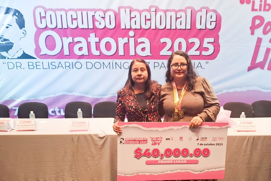 COMITÁN, Chiapas (sucedioenoaxaca.com/vía IEEPCO).- La representante del Instituto Estatal Electoral y de Participación Ciudadana de Oaxaca (IEEPCO) en la etapa estatal del Concurso Nacional de Oratoria “Dr. Belisario Domínguez Palencia. Libres por la palabra libre” 2025, resultó ganadora en la fase nacional realizada en Comitán, Chiapas.