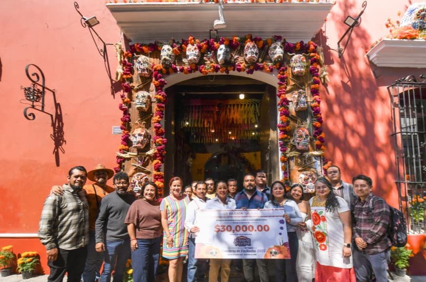 OAXACA, Oax. (sucedióenoaxaca.com/vía COMUNICADO).- En el marco del Día de Muertos, La Fiesta más Viva de Todas, la Secretaría de Turismo (Sectur Oaxaca) entregó los tres primeros lugares del Concurso de Decoración de Fachadas 2025, en el que participaron 23 establecimientos del Centro Histórico de la capital del estado.