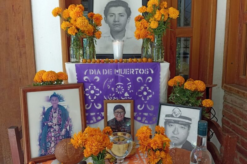 Levantamos un altar año con año esperando no agregar fotos, pero aceptando que la vida es un ciclo, que todos entramos y todos salimos, solo que, en México, en Oaxaca, los dioses mexicas, zapotecas y mixtecas firmaron un tratado con el Dios cristiano y permiten una unión entre ambos mundos, un par de días al año cruzan el puente y se abren las puertas y son bienvenidos en casa.